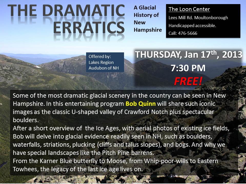This entry was posted in Monthly Program Flyers and tagged #NHAudubon, Bob Quinn, Glacial History NH, Lakes Region Audubon of NH, Loon Center. Bookmark the permalink.